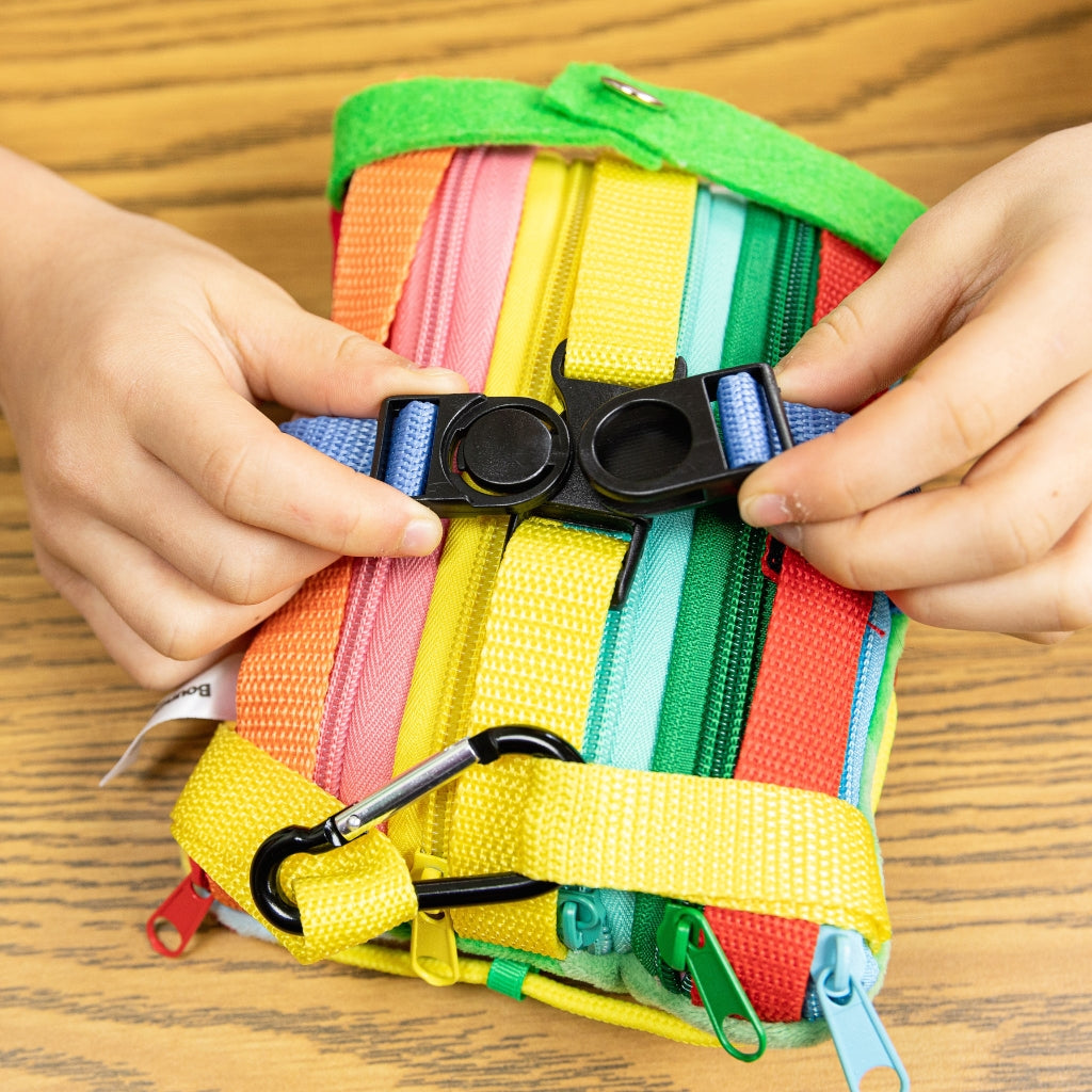 - ENGAGING: Helps children from 3-8 with tactile exploration skills, identifying colors, and counting as the bright fun straps, zippers, buttons, cord and buckles hold their attention
