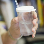 The Sip-Tip® makes drinking easier for individuals who have difficulty generating and maintaining suction.  An individual can either suck from the straw themselves, or you can assist by "pumping" the fluid up the straw with the flexible lid. Simply cover the vent hole with your finger and press down several times until the liquid reaches the desired height. The Select-Flow Valve will keep the straw full of fluid, thereby reducing the air ingested and the effort required for each sip (notice the juice staying at the top of the straw in one of the images above). The valve also slows the flow of fluid, which allows for more control over the quantity of fluid taken with each sip and helps to ensure that fluid is deposited in the front of the mouth. Users tend to experience less coughing and choking and consume more fluids while drinking with the Sip-Tip®.