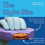 Since only a portion of the food is presented at a time, the Right Bite encourages appropriate bite sizes, prevents mouth stuffing, and paces the rate of eating to allow for adequate chewing time. For jaw grading and control, use food items of various thicknesses and practice gauging how far to open the mouth for each food item. No matter what your goal is, the Right Bite eliminates the risk of the therapist/caregiver being bitten during feeding therapy. Furthermore, being presented with a prescribed bite decreases the visual sensory concerns that some individuals may have with large pieces of food. The Right Bite therapy tool is recommended for individuals of all ages. Measures roughly 4 x 2 inches with a bite opening of 1.4 x .6 inches. Dishwasher-safe.