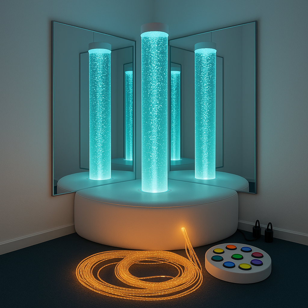 Transform any room into a soothing sensory retreat with this all-in-one sensory bubble tube and fibre optic seat combo. Designed for regulation, visual stimulation, and comfort, this popular piece is perfect for calming corners, therapy spaces, classrooms, or at-home sensory rooms.