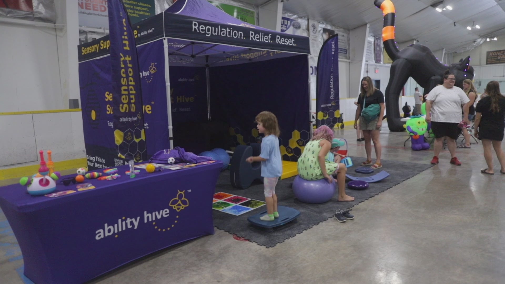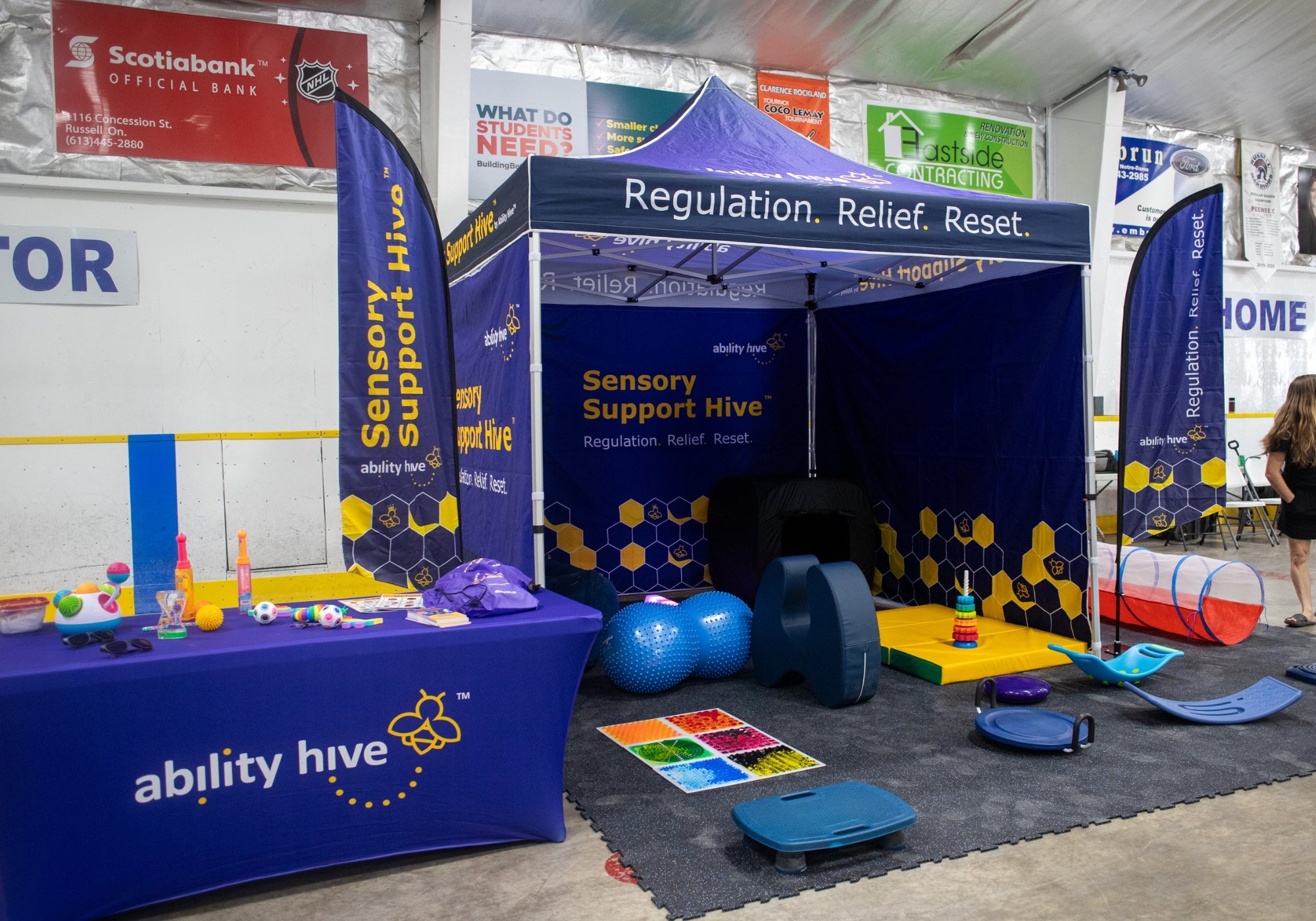 Built on a 256 sq ft foundation of 8mm gym tiles and housed under a professionally branded tent, the Hive is equipped with a carefully curated selection of sensory tools, calming items, and interactive experiences.