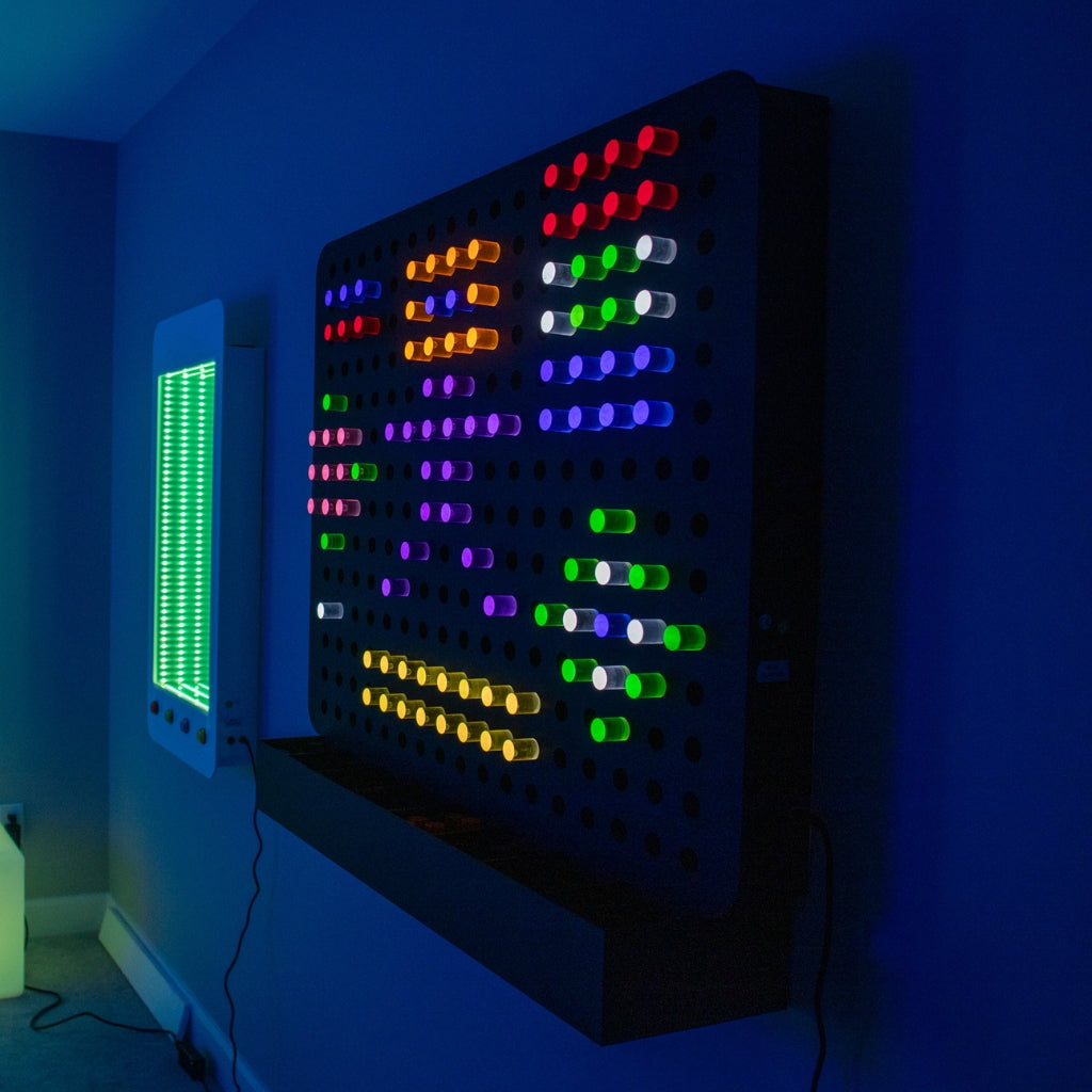 Bring creativity to life with the Glowy Grid Wall™ — a giant, interactive light-up board that sparks imagination and sensory play! Measuring 39.5" wide x 36" tall x 4.75" deep and weighing 23.9 kg, this oversized wall unit is perfect for classrooms, museums, therapy spaces, sensory rooms, or play areas.