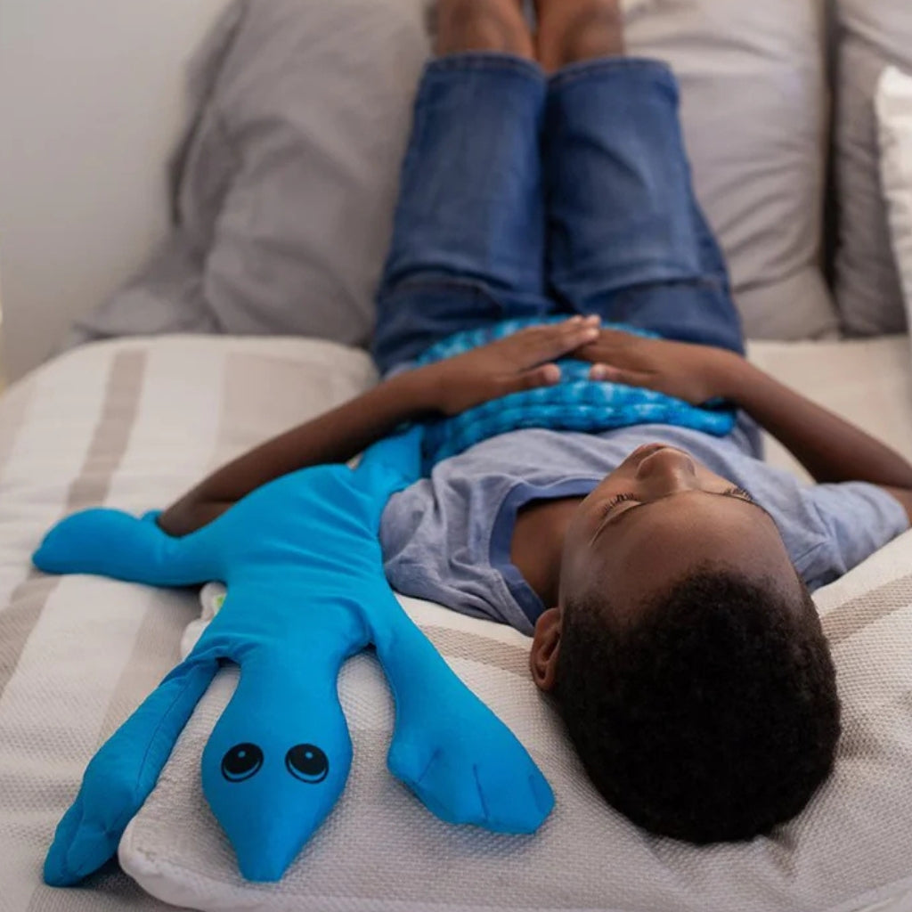 The weighted turtle is a sensory tool used to calm and comfort, helps diminish anxiety and agitation, while improving levels of concentration and attention.